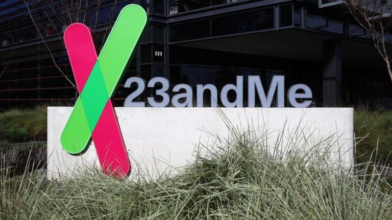 A sign is posted in front of the 23andMe headquarters in Sunnyvale, California, on Feb. 1, 2024.
