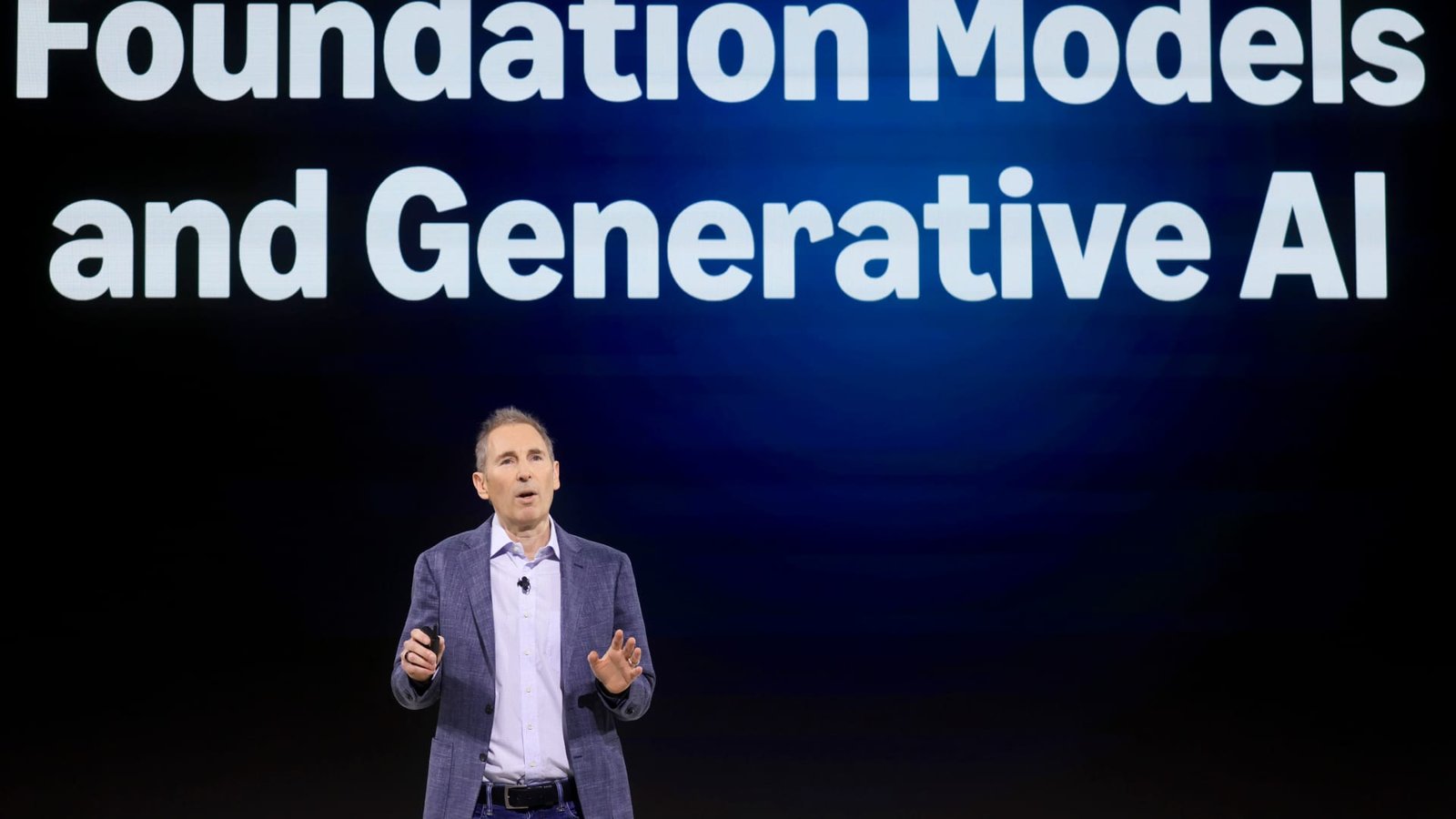 Amazon CEO Andy Jassy speaks at a company event in New York on Feb. 26, 2025.