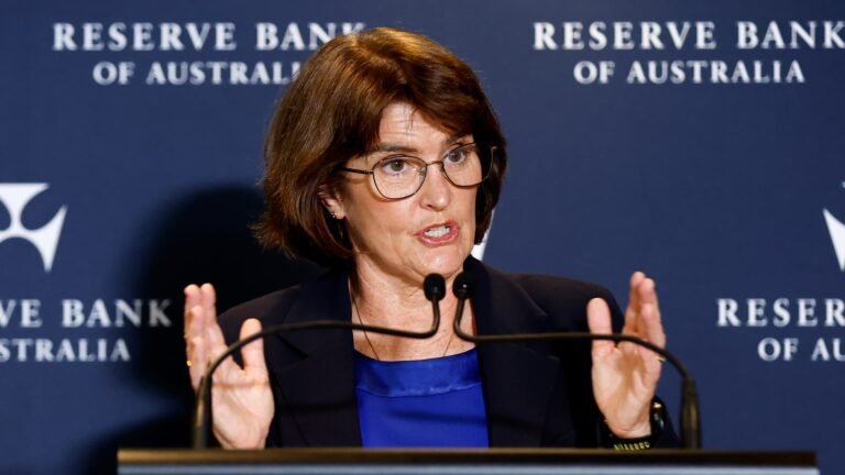Michele Bullock, governor of the Reserve Bank of Australia (RBA), speaks during a news conference at the bank’s head office in Sydney, Australia, on Tuesday, Apr. 1, 2025.