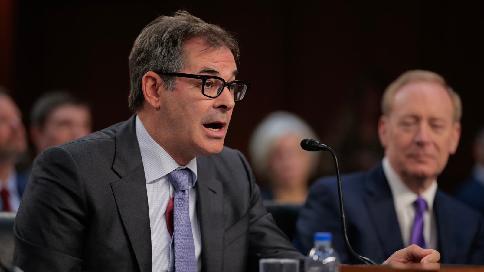 CoreWeave CEO Michael Intrator, left, testifies before the Senate Committee on Commerce, Science and Transportation in Washington on May 8, 2025.