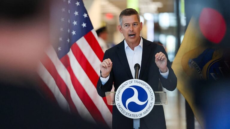 Transportation Secretary Sean Duffy holds a news conference at Newark Liberty International Airport, where he announced the reopening of a major runway at the airport, nearly two weeks ahead of schedule on June 2, 2025 in Newark, New Jersey.