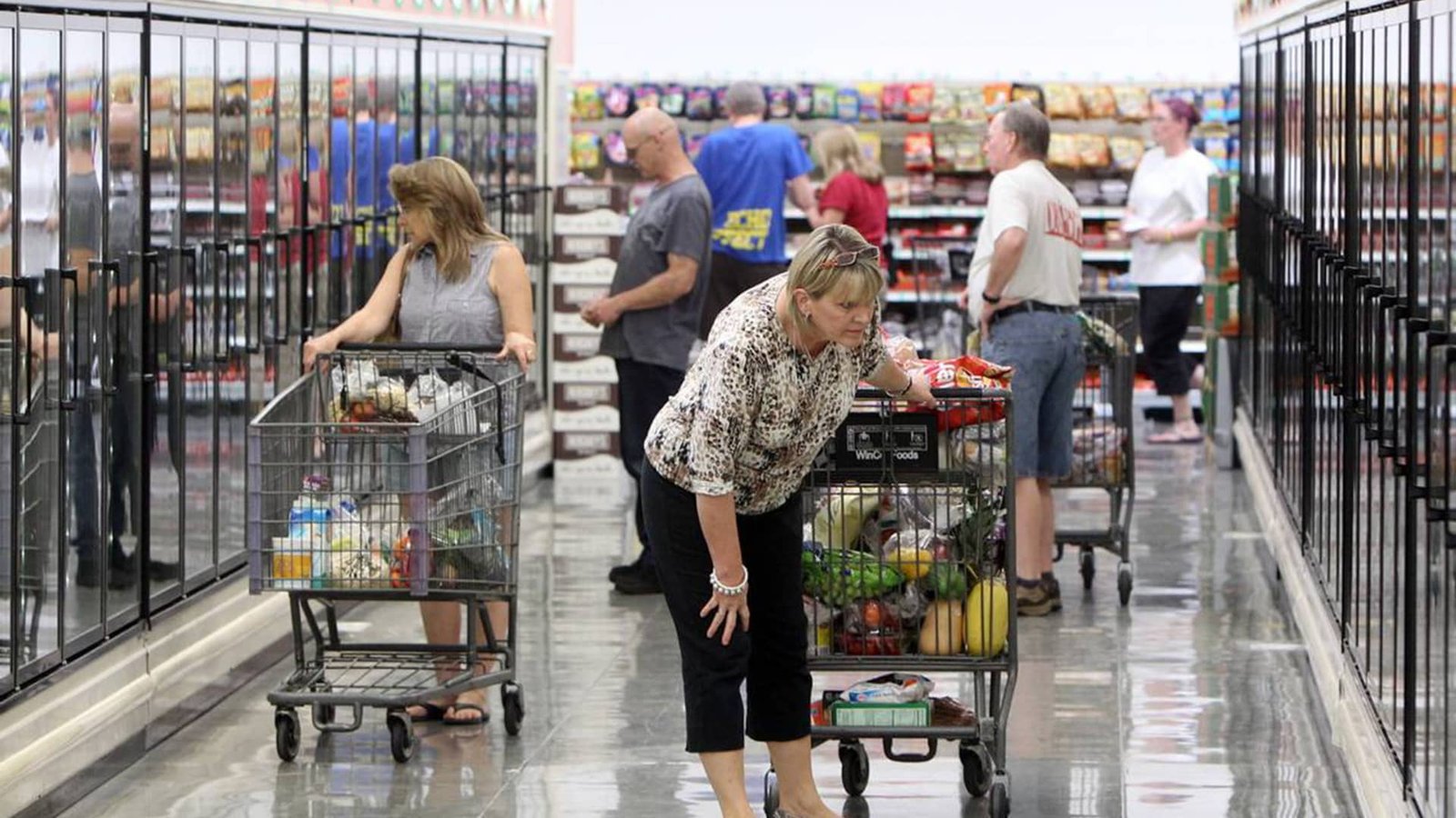 Shoppers browse the frozen food cases at WinCo.