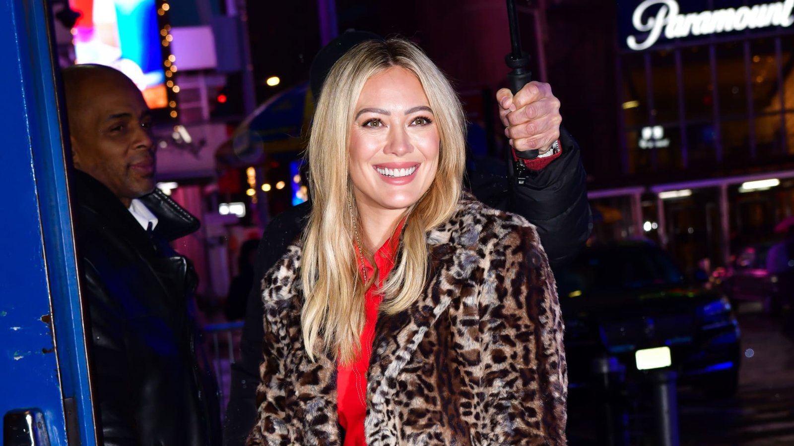 Hilary Duff arrives to ABC’s “Good Morning America” in Times Square on January 23, 2023 in New York City.