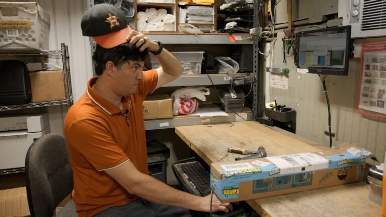 Mike Jelliff at his GeekStands warehouse in Tyler, Texas, on June 6, 2025. Jelliff sees three times more returns of his professional music gear on Amazon, compared to the average on other marketplaces like eBay and Walmart.