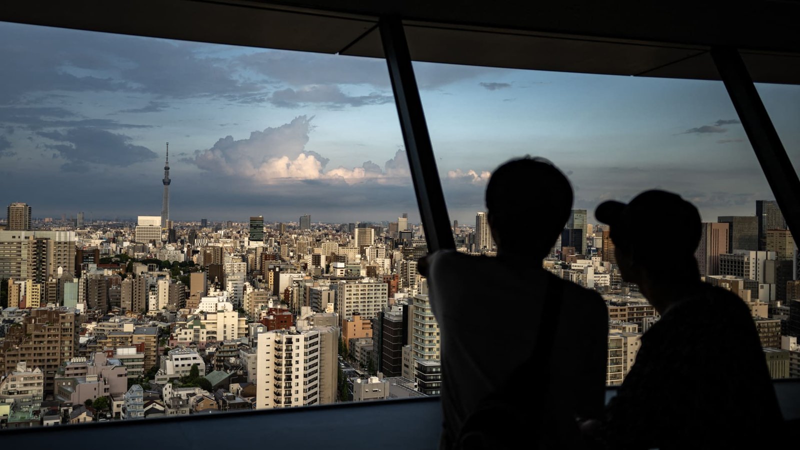 People look at the city’s skyline from the Bunkyo Civic Center Observation Deck in Tokyo on August 14, 2024.