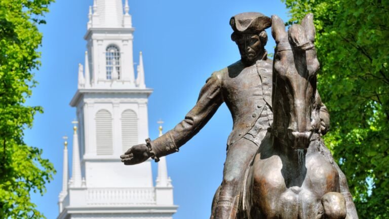 Paul Revere statue in Boston Freedom Trail, a national landmark and major tourist attraction in Boston, Massachusetts.