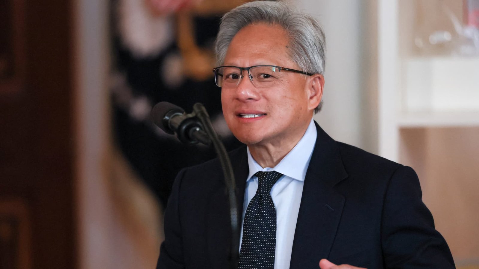 Nvidia CEO Jensen Huang attends an event, “Investing in America,” held by President Donald Trump in Washington, April 30, 2025.