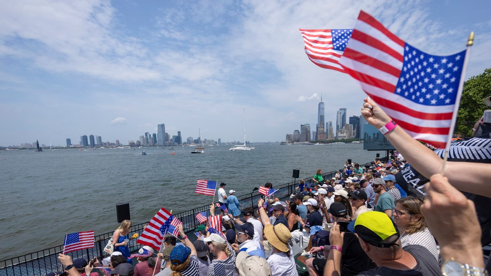 Ticket holders on Governors Island, New York gather to watch SailGP races, Season 4, New York, Sunday 23rd June 2024.