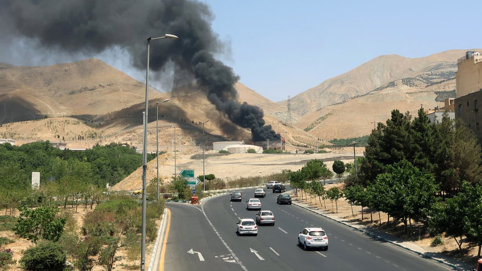 Smoke billows for the second day from the Shahran oil depot, northwest of Tehran, on June 16, 2025.