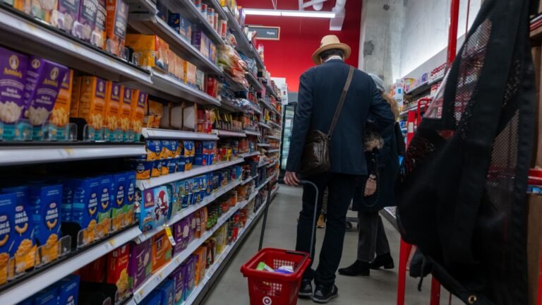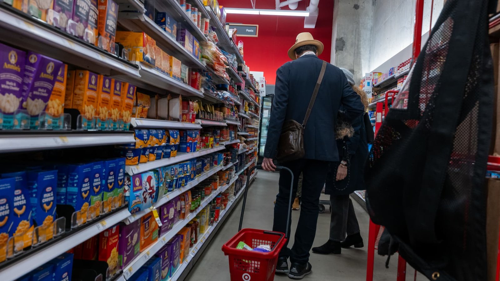 People shop at a grocery store in Manhattan, New York City, on April 1, 2025.